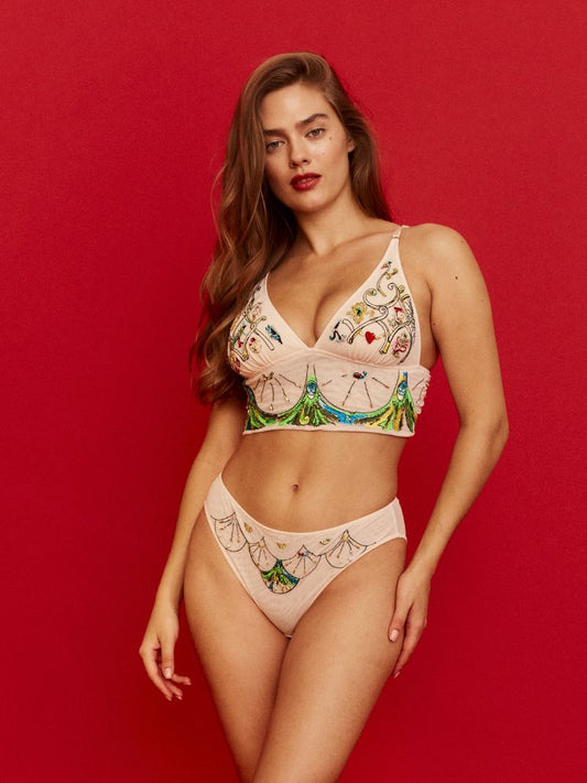 Cupid is crafted from soft lingerie mesh. The garment is handmade using machine embroidery,...