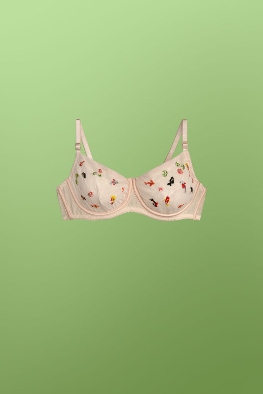The soft cup bralette is adorned with sparkling droplets of multi-colored glass and 22 colorful...