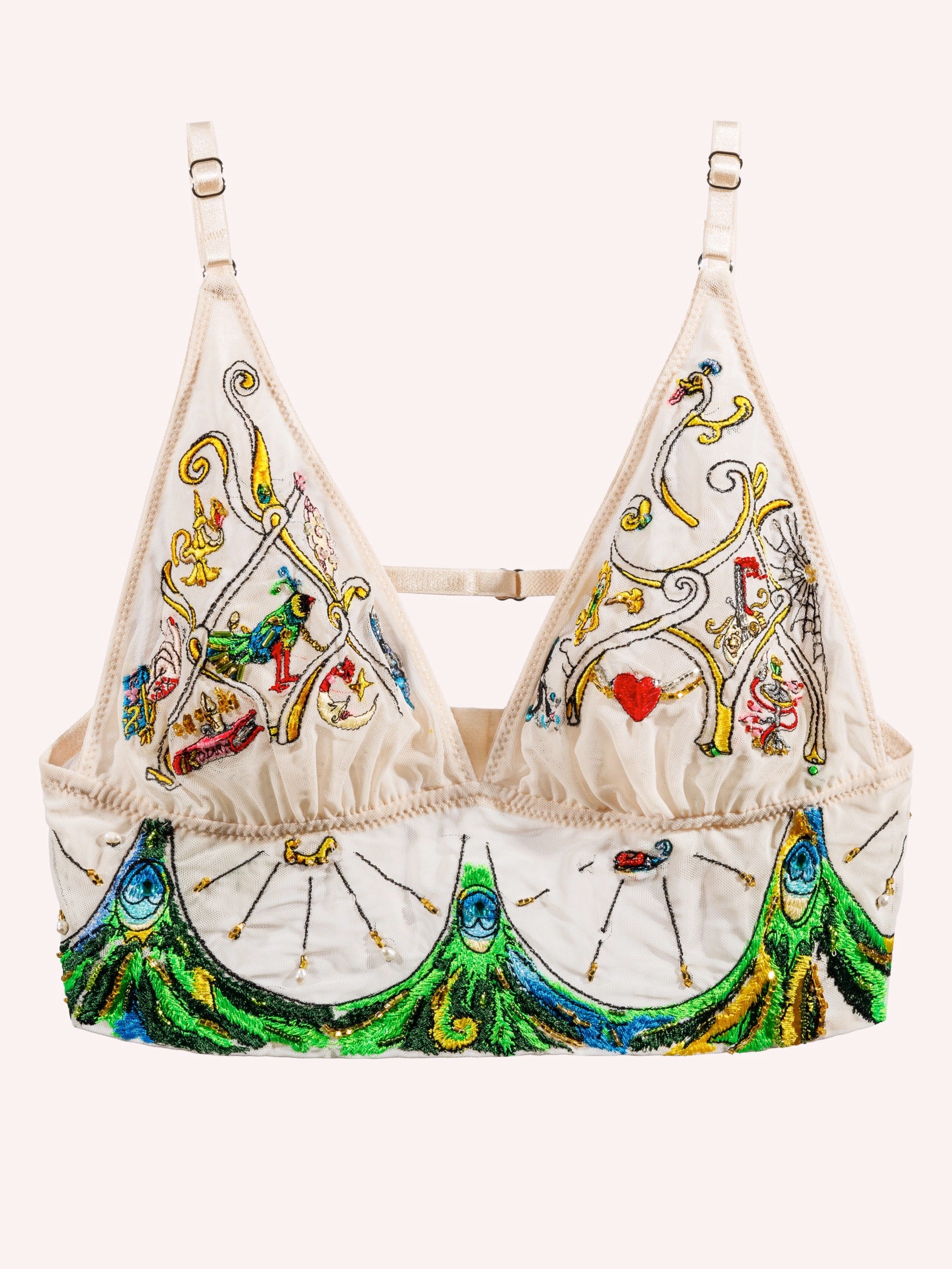 Every stitch of this stunning masterpiece is a window into the forbidden universe of 1000 and 1 Nights, from a peeping eye to a dreaming Moon lover, a bird in a gilded cage, Al ad Din's magical lamp, golden strings of Oud...