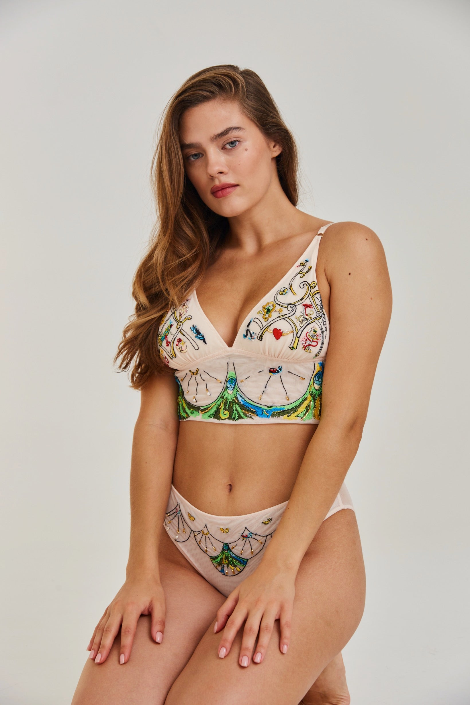 This garment is crafted from soft mesh of EU origin, featuring natural pearls and Japanese beads. The fabrics and accessories used meet the stringent requirements of the OEKO-TEX certification, ensuring the highest level of quality and safety.