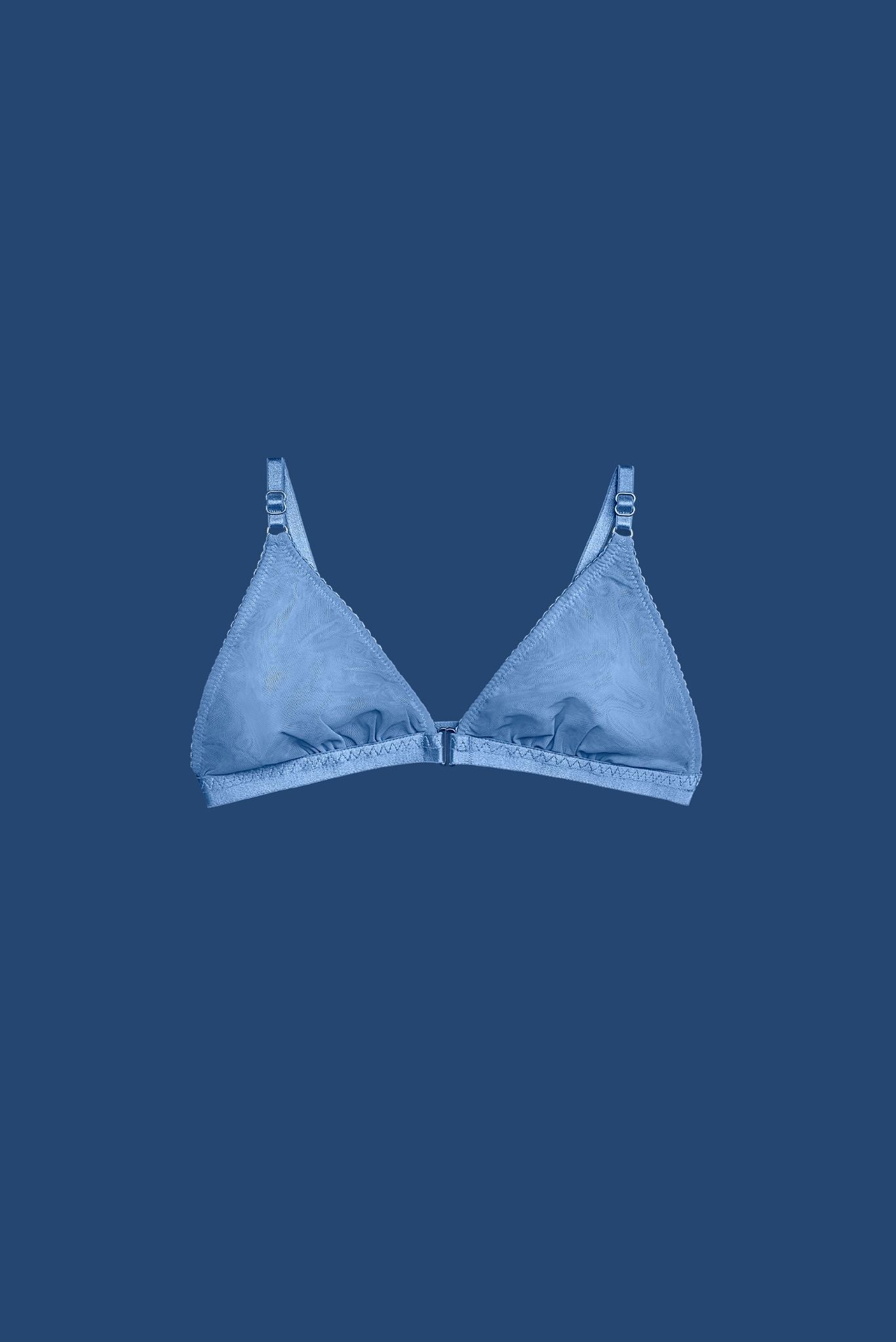 The shape you love. The shape we sew with special love. Elastic cups, gently complementing the natural lines of the body, light and shining with a delicate blue color - like the petals of a flower on your chest. Products are sent worlwide within 7-10 days.