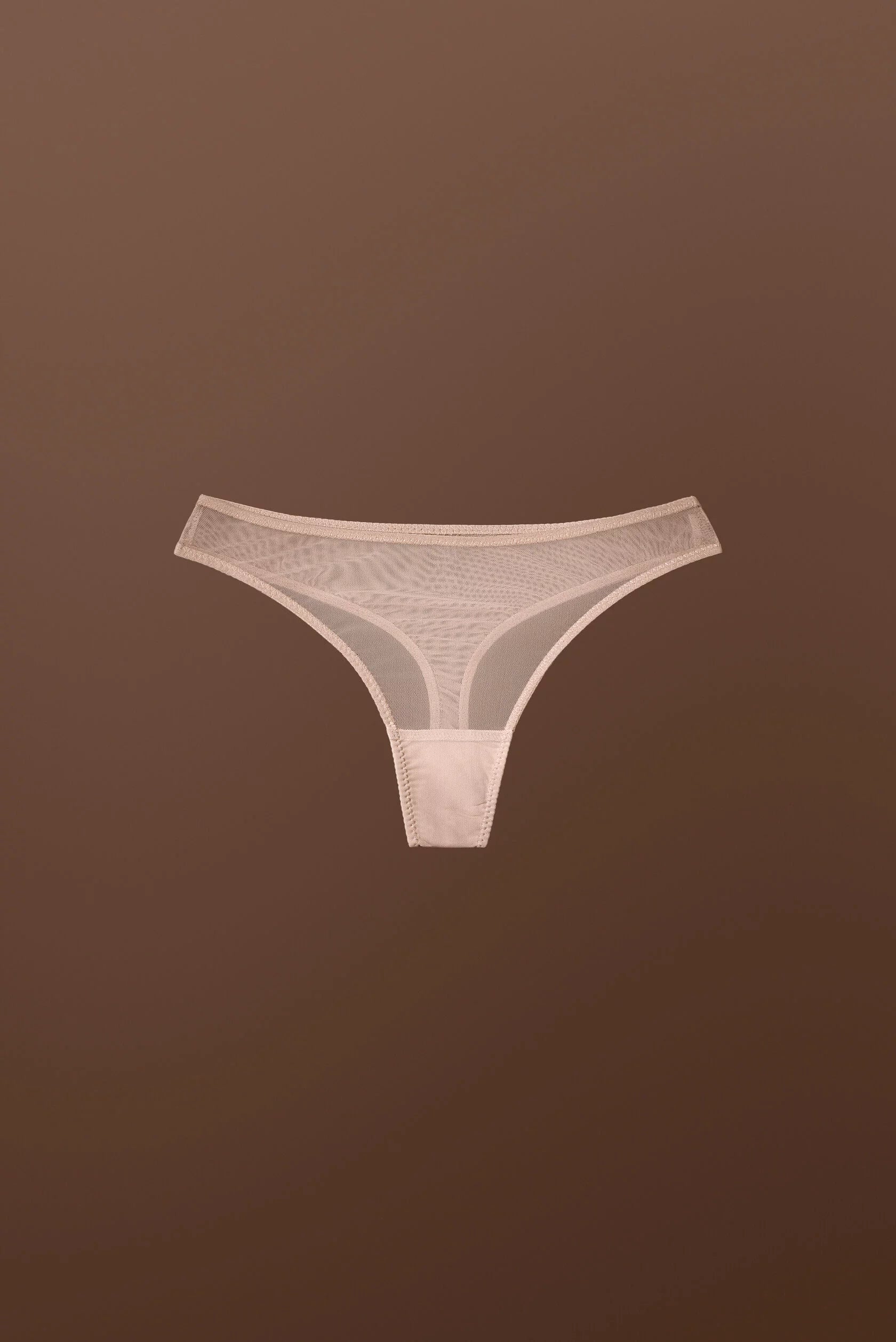 Thong panties without embroidery made of stretchable lingerie mesh.