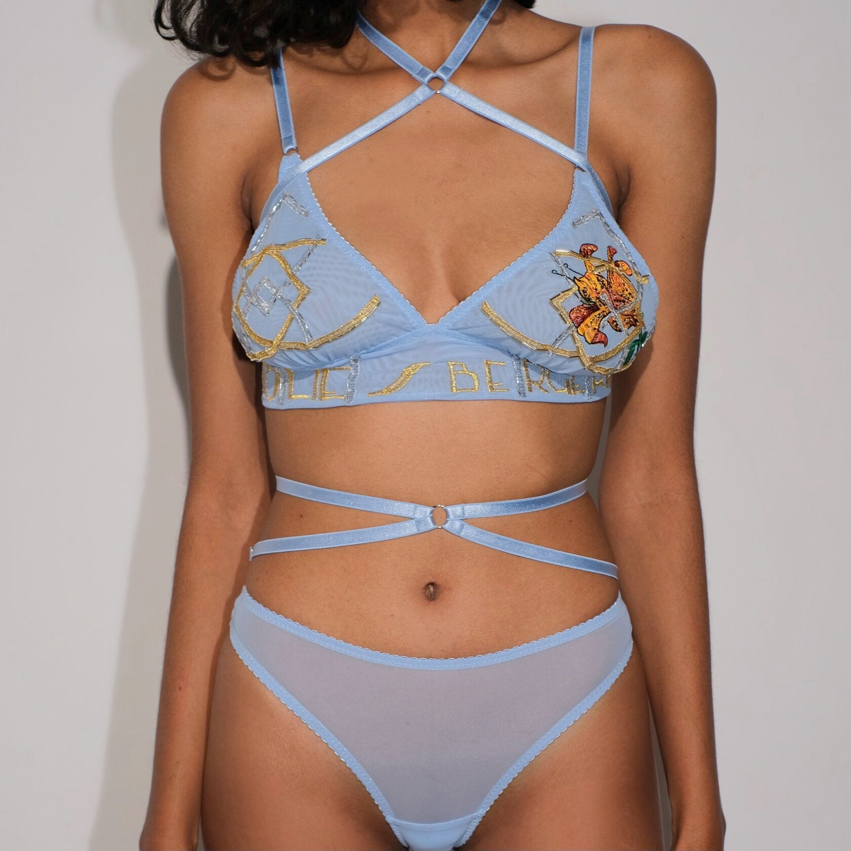 Classic thongs without embroidery from a stretch linen mesh will perfectly complement your bodice with embroidery, for example, "Tiger Lily" in everyday wear. Products are sent worlwide within 7-10 days.