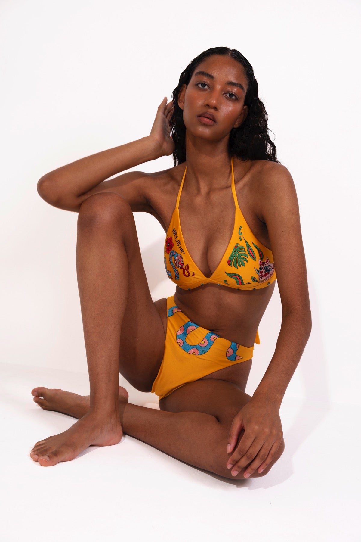 This bright yellow swimsuit "Day Adventures" is all about adventure in the jungle! A hot summer day has arrived, and our heroine is hiding from the sun in a magical tropical forest... But it’s not as safe as it seems!