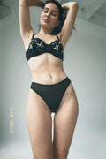 Deep black color, elastic and soft lingerie mesh, 8 soaring cranes on the bodice.