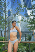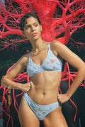 The bralette is made of blue mesh, shining like a bright desert sky, can be worn with high-waisted panties “Little Prince”, or with a string with the title of the book.