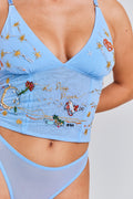 Top is made of blue mesh, shining like a bright desert sky, can be worn with high-waisted panties “Little Prince”, or with a string with the title of the book.