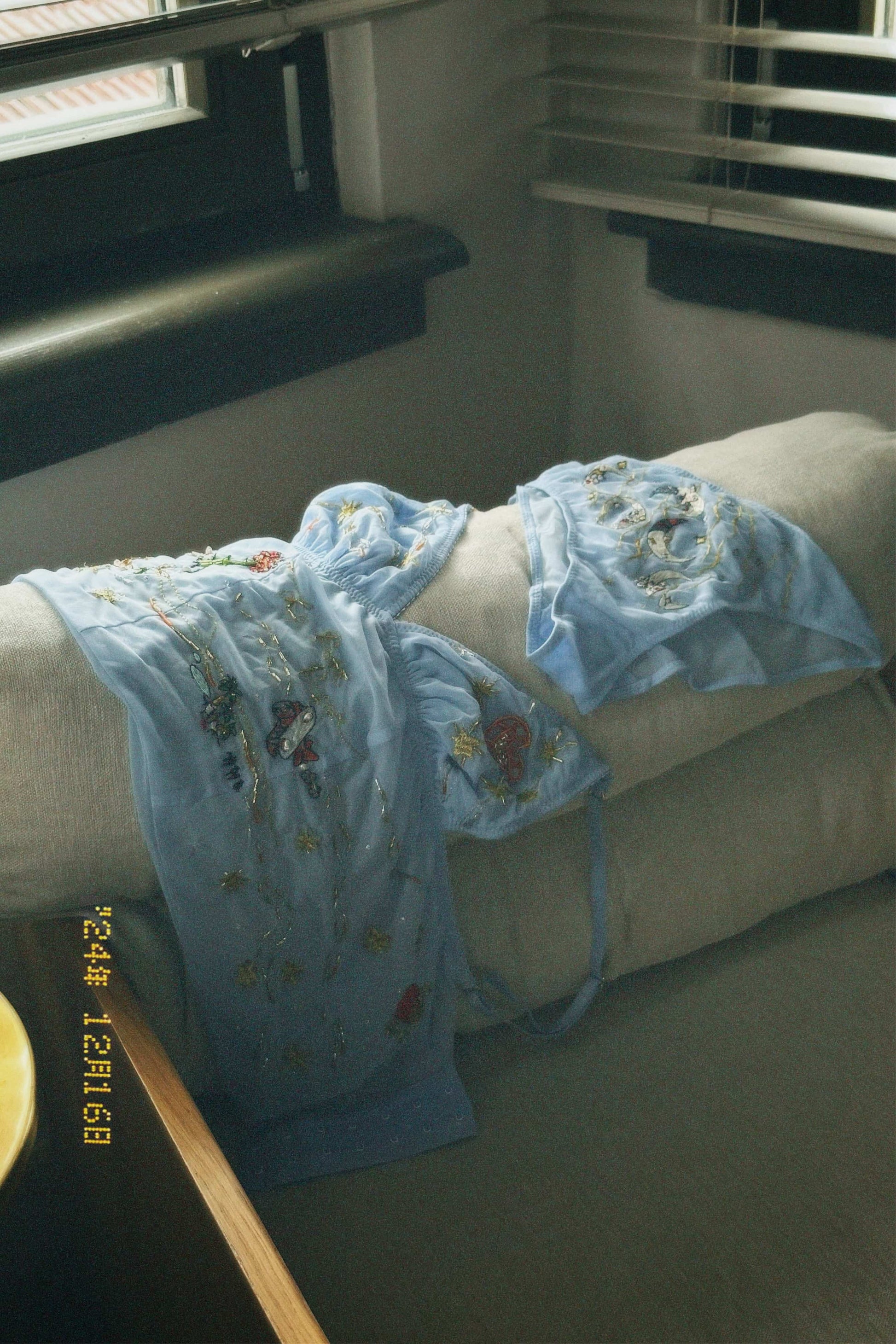 Top is made of blue mesh, shining like a bright desert sky, can be worn with high-waisted panties “Little Prince”, or with a string with the title of the book.