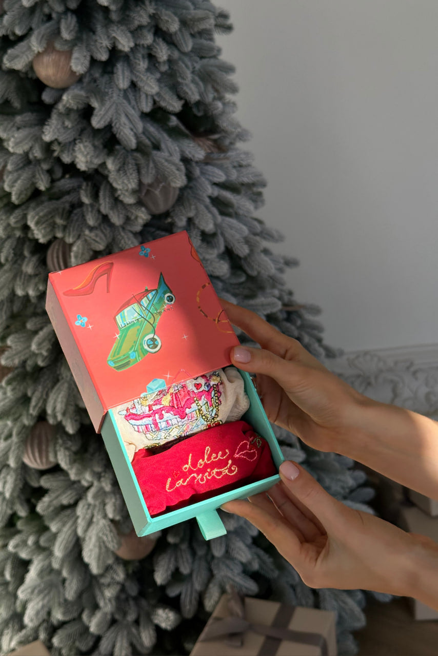 At first, it is a heavenly pleasure: crystal creamer, ice cream, toppings... just a feast for the eyes (and soul!). Every detail of the design says, "Live here and now." And the second ones are red for good luck! Have you heard about traditions? After all, as they say, red underwear brings wealth, happiness and love. Throwing red panties on a chandelier is for wealth, and in Italy the New Year in red panties is for luck and love. We have collected all these chips and put them in one box!