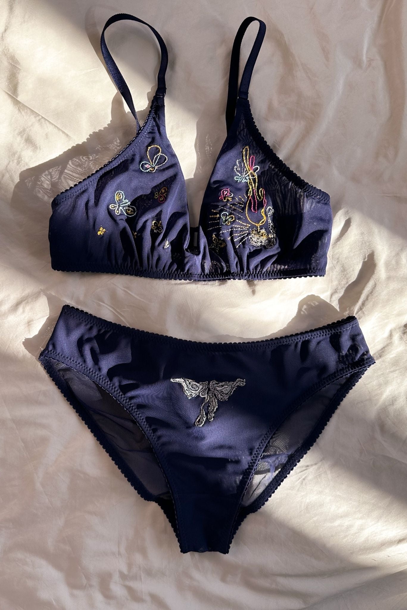 On the bra, flames beckon and mesmerize, much like a loving soul that, like fire, draws others in—without hesitation, without doubt. But, as with love, caution is sometimes needed. Moths and butterflies fly toward the flame, unaware of what awaits them. It’s the very same trap one might fall into when swept away by passion, forgetting the consequences.
