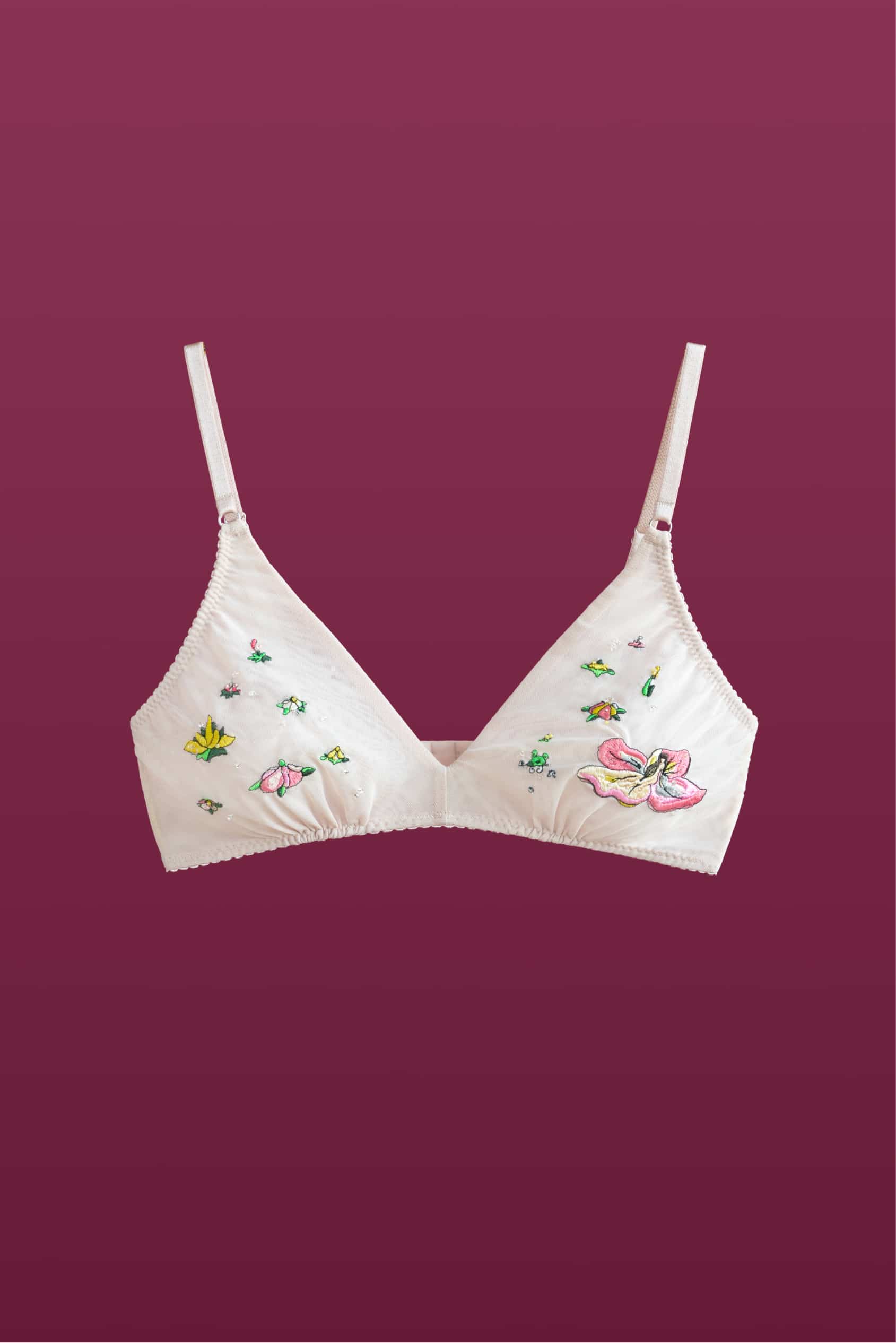 Thumbelina graces the bra — delicate, exquisite, with butterfly-like wings, gently embraced by her enchanting floral surroundings.